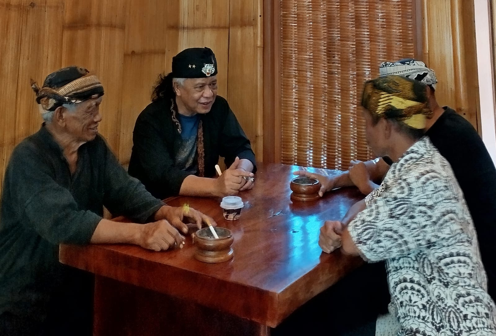 Beberapa tokoh yang hadir di antaranya sesepuh kampung, Abah Tajudin, tokoh pemangku adat Bah Ucu, serta perwakilan nonoman (pemuda) Kang Aceng dan Kang Aep, bersama warga lainnya. Dalam suasana santai sambil minum kopi dan menikmati goreng pisang di warung milik Kang Ucu, mereka mengungkapkan berbagai persoalan yang tengah dihadapi masyarakat adat saat ini.