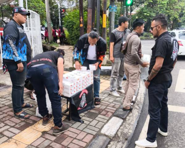Citrapedia.id |Komunitas Lendeng N D’gank Chapter Timur menggelar kegiatan Jumat Berkah di perempatan lampu merah Jalan Palasari-Lodaya, Kota Bandung, Jumat (14/11/2025).